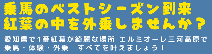 愛知県豊田市の標高660mに位置する乗馬クラブ、エルミオーレ三河高原。愛知県最大級の馬場を要し、小学生のお子様から60代までの方々がそれぞれの方向性の沿ってを楽しまれております。